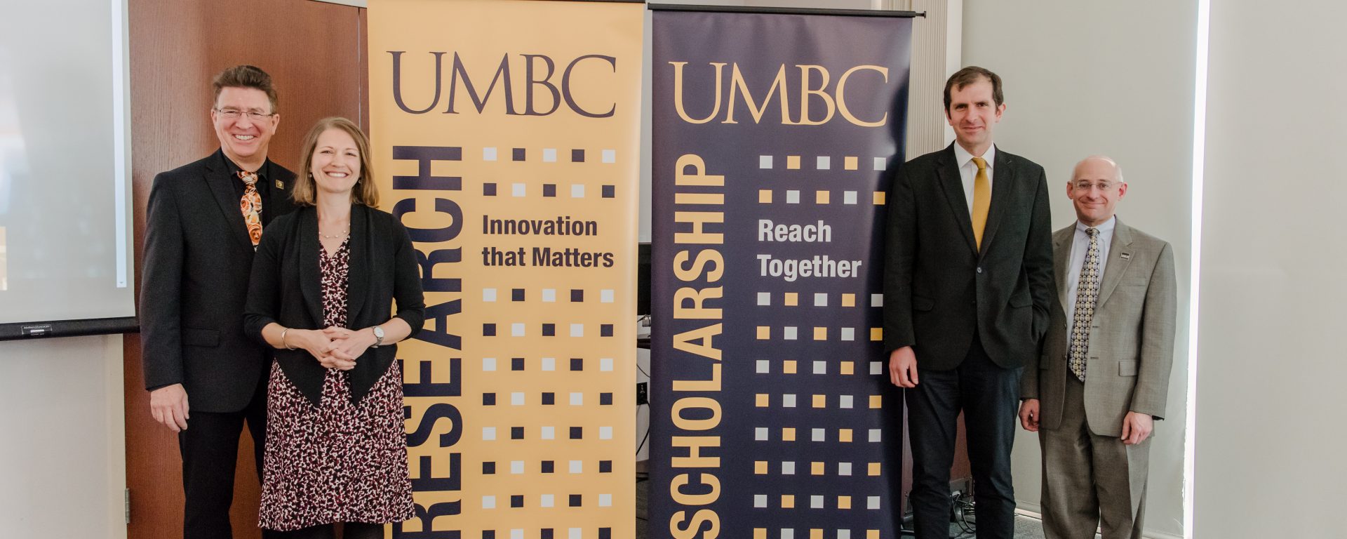 Banner image: (L to R): Steiner, Mallinson, Don Engel, assistant vice president for research, and Casper. All images by Marlayna Demond ’11 for UMBC.