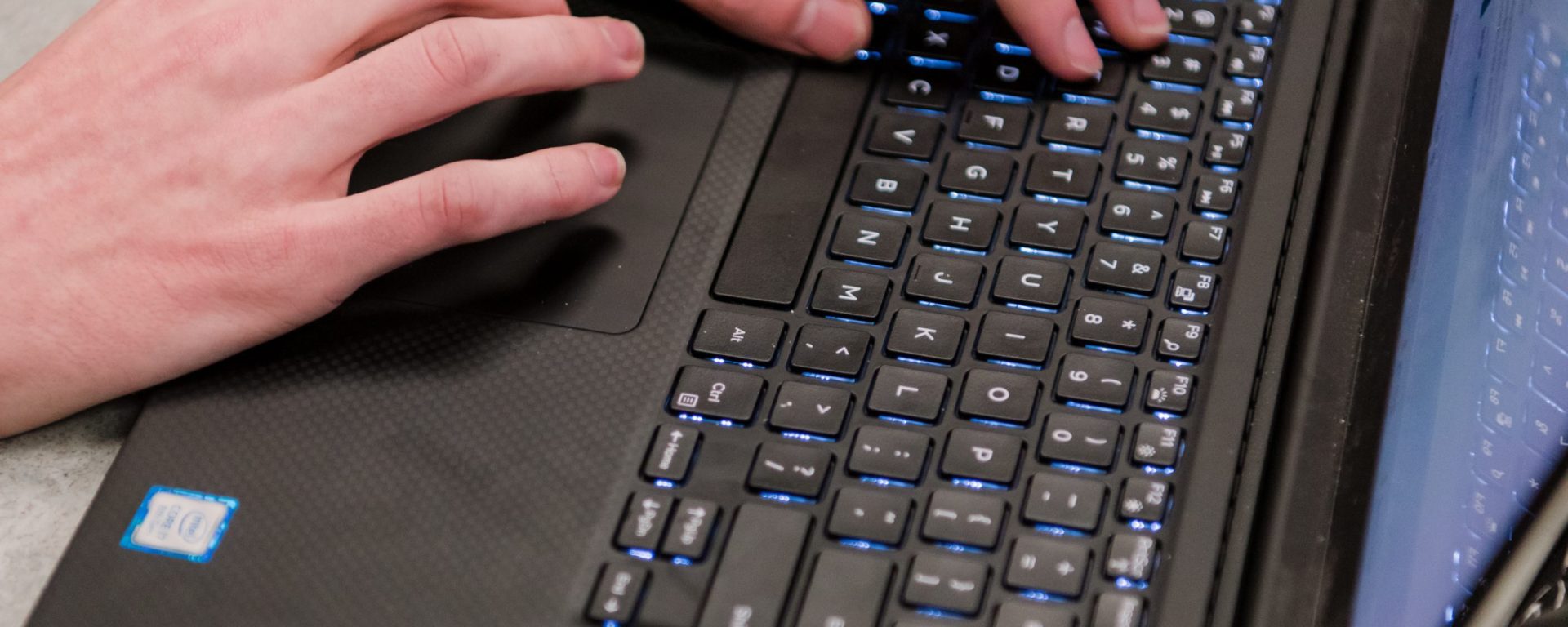 Banner image: A person typing on a computer. Photo by Marlayna Demond ’11 for UMBC.